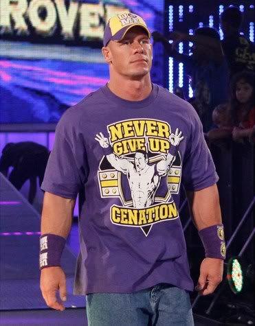 Deși Cena era mai rigid decât bunicul în apropierea morții, mi-a amintit totuși că prin facultate îmi luasem de pe Ebay un tricou din ăla mov cu inscripția Never Give Up…